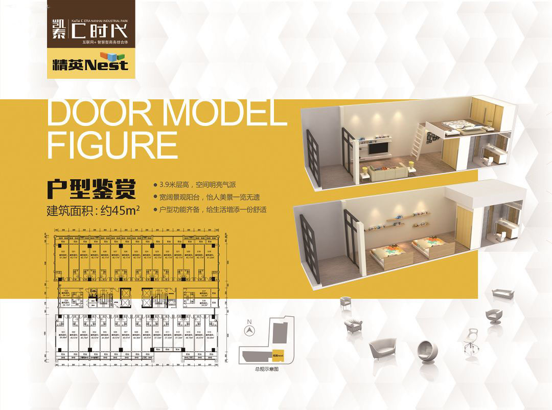 为满足园区及周边白领的生活需求,C时代二期特别推出24-61㎡的公寓产品——精英Nest。3.9米层高,用一层享两层,可分割成多种功能空间,小户型大空间,自住温馨,投资安心。私家景观大阳台,视野开阔,尽揽灯湖美景,享受自在生活。